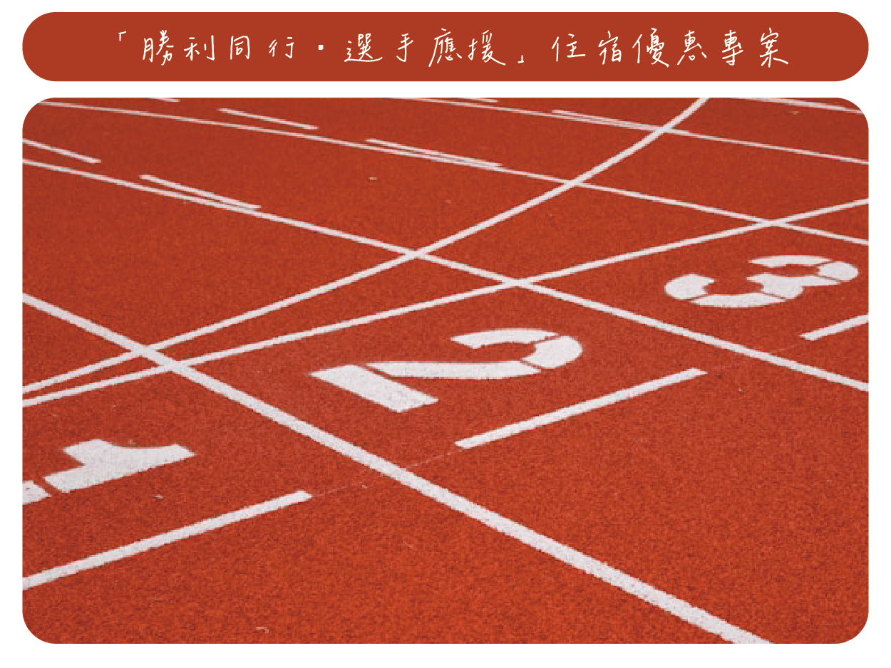 ◆適用對象:參加花蓮各項運動賽事之選手,入住時出示「選手證」或官方相關參賽證明即可享優惠。