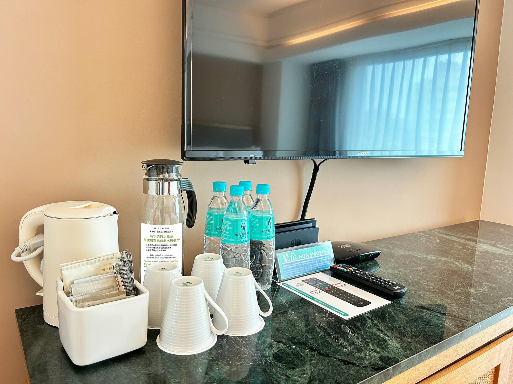 The disposable amenities will not be provided in the room.(Including Toothpaste, toothbrush, comb, slippers, razor, shower cap, soap, cotton swabs, dental floss sticks)